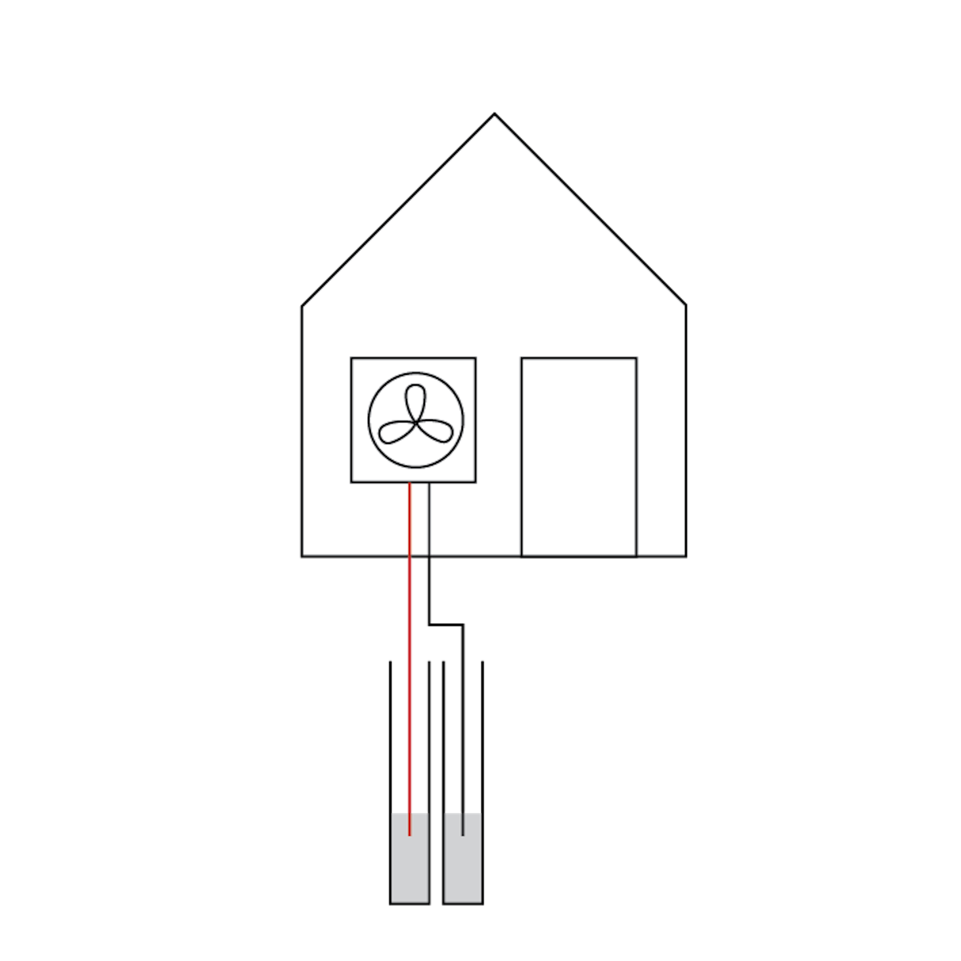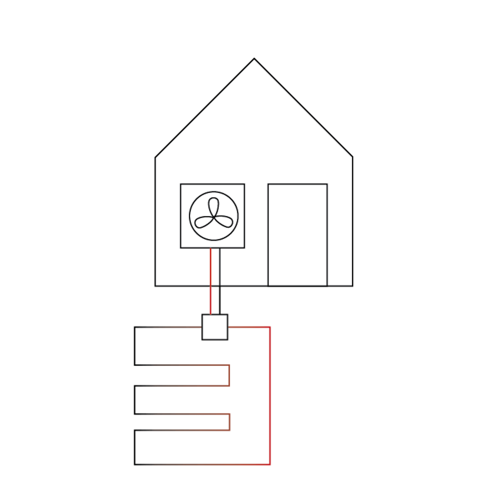 Sie nutzt einen Erdkollektor zum Heizen und Kühlen des Hauses. Geeignet, wenn rund um das Haus unbebautes Land vorhanden ist.