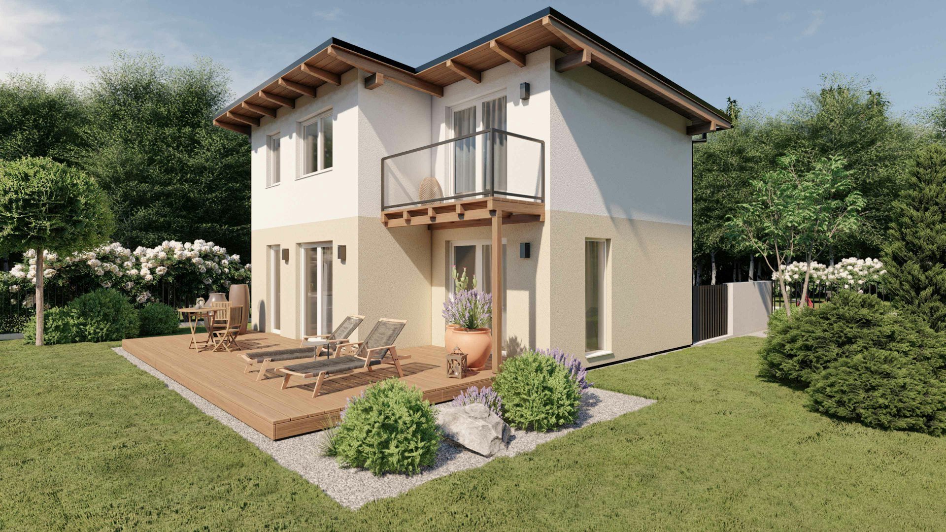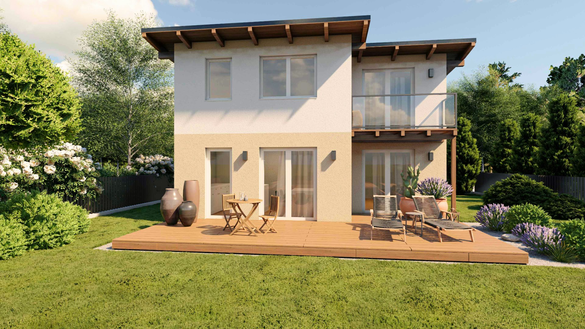 • Das „Athena“ zeigt gekonnt, wie viel Raum durchdachte Planung schafft. Im OG gibts zwei Zimmer mit extra Schrankraum, eines davon auf Wunsch mit Balkonzugang, – und im EG bietet sich auf rund 30 m² Wohnraum viel Platz fürs gesellige Beisammensein.