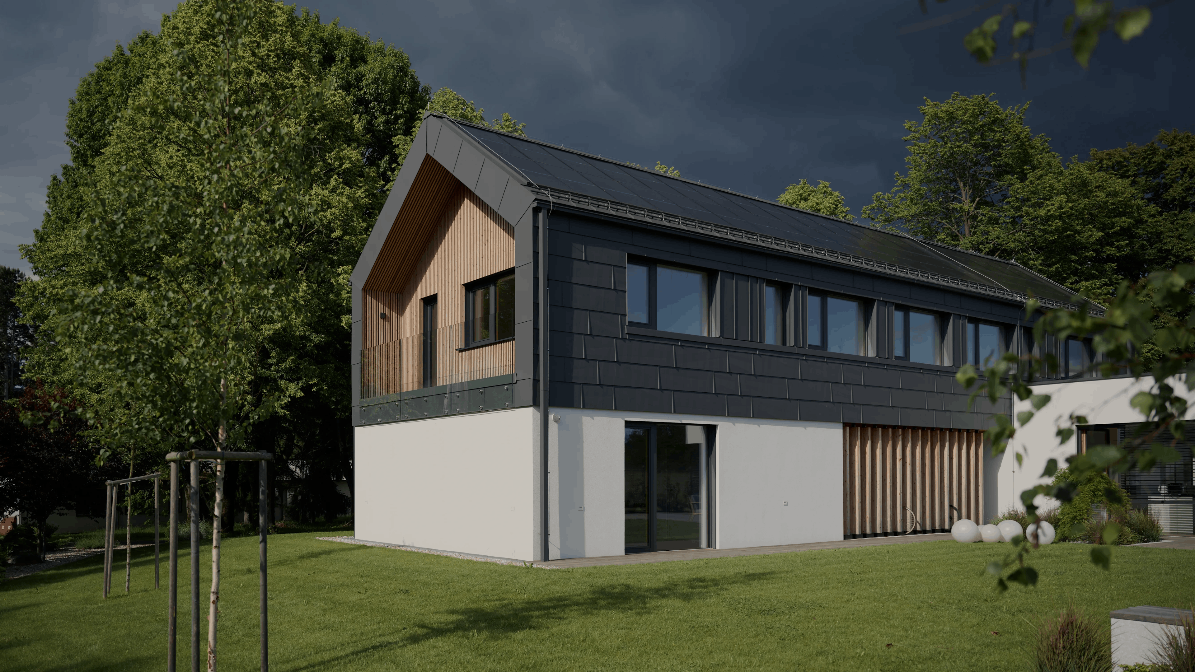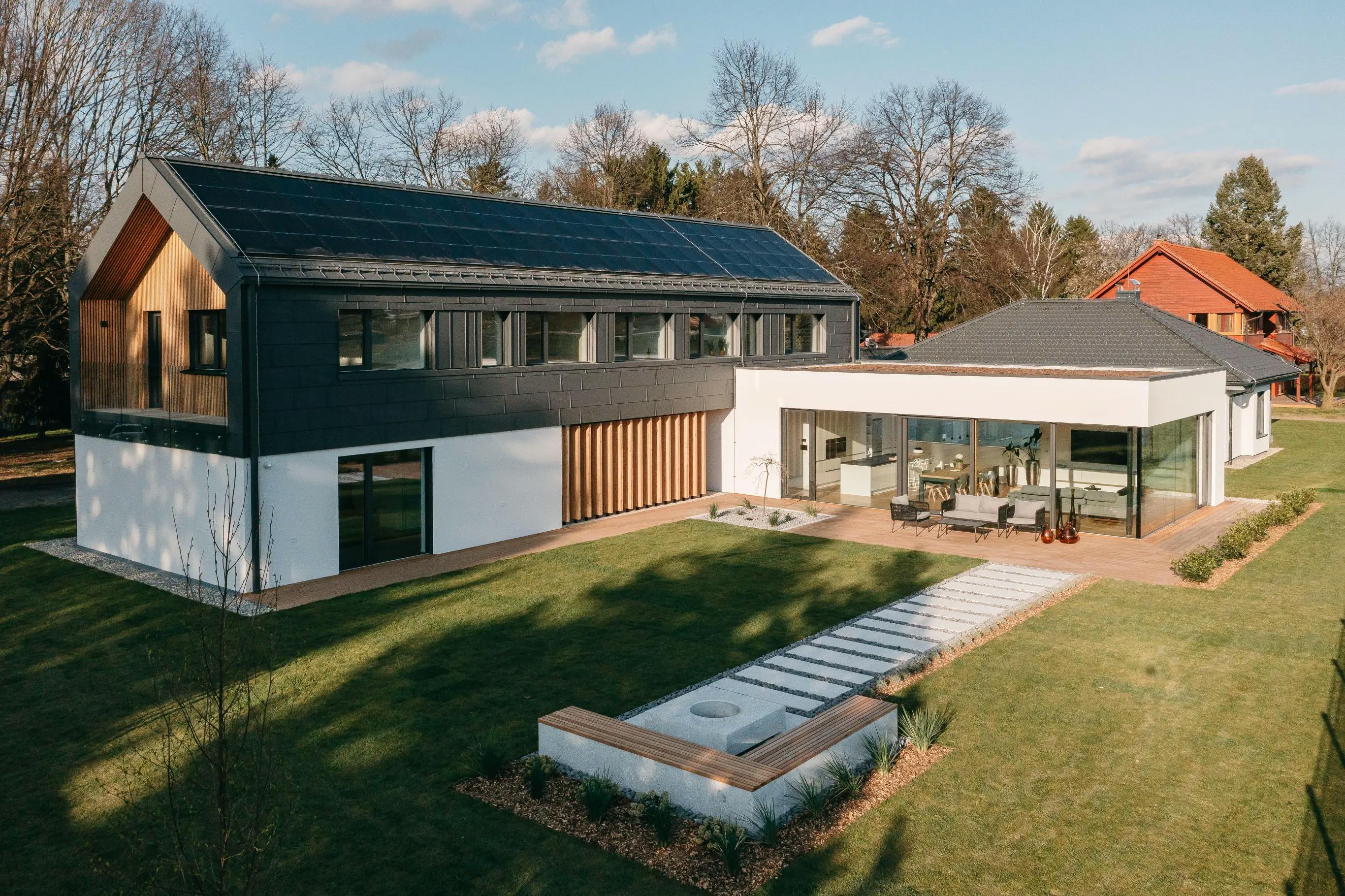 Das Haus Dom24h wurde entwickelt, um den modernen Anforderungen an flexibles und funktionales Wohnen gerecht zu werden, insbesondere in einer Zeit, in der Homeoffice zur Normalität geworden ist. Die Architektur des Hauses trennt den Arbeits- vom Wohnbereich, die durch einen „Carport“ verbunden sind, was eine klare Abgrenzung zwischen beruflichem und privatem Leben ermöglicht. Der Wohnbereich auf der Südwestseite umfasst ein geräumiges Wohnzimmer, eine Küche, ein Esszimmer und weitere funktionale Räume, während der Arbeitsbereich eine ruhige Umgebung für konzentriertes Arbeiten bietet.