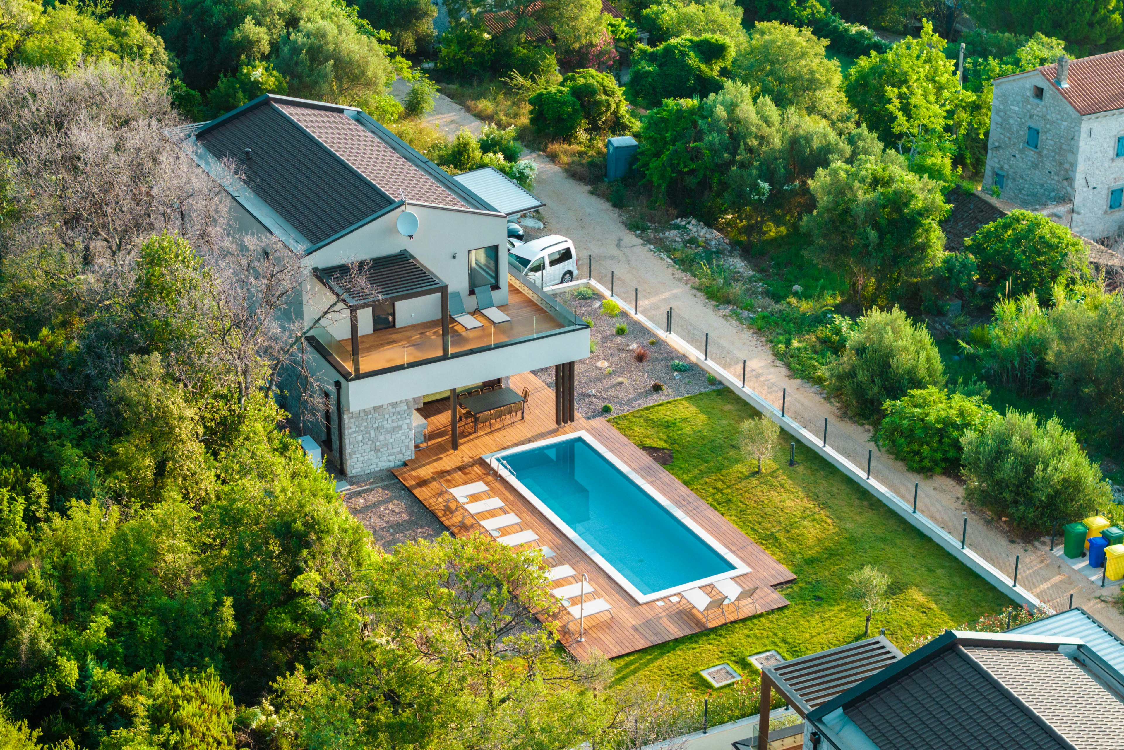Each Ravni villa, although similar in basic architectural design, reflects unique emotions and brings a sense of home for visitors. Spanning over 170 square meters of living space over two floors, the floor plans are carefully planned to ensure comfort and functionality. With more than 63 m², the terrace on the upper floor offers an extraordinary view of the endless sea, which inspires visitors with its beauty. Each bedroom has its own access to the terrace, and each villa has its own pool where guests can cool off and enjoy peace and comfort, adding extra value to their stay.
