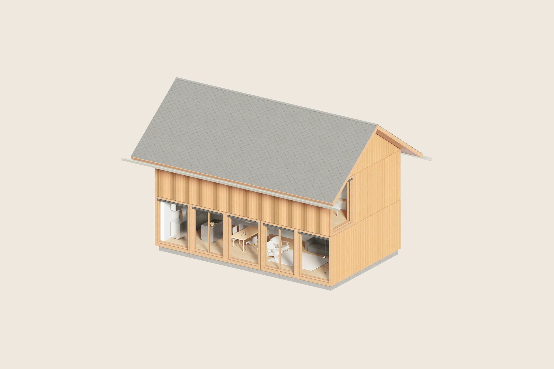 Hiša MDLR 125 D je sodobna montažna hiša, ki združuje modularno prilagodljivost in naravne materiale za trajnostno bivanje. Popolnoma lesena konstrukcija z izolacijo in fasado zagotavlja energetsko učinkovito in zdravo bivalno okolje.