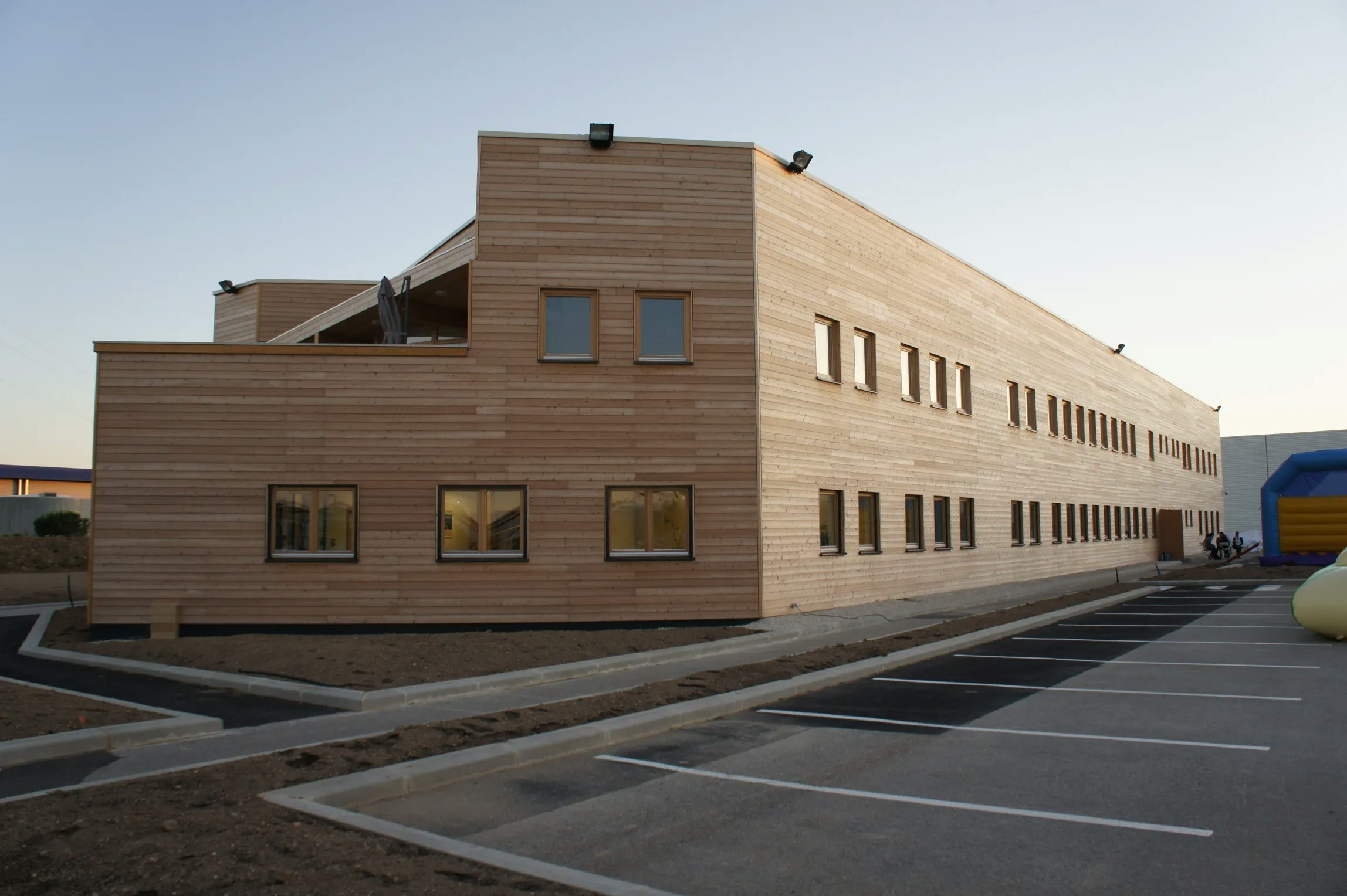 EKO objekt je v celoti oblečen v macesnov les. Jedro objekta sloni na dvanajstih mogočnih, več kot 6 m visokih ter 30 cm širokih lesenih macesnovih lepljenih stebrih, ki delujejo na obiskovalca kot aleja mogočnega drevoreda, katerega obdajajo steklena gnezda, uokvirjena v leseno vidno macesnovo lepljeno konstrukcijo, ki daje zaposlenim v pisarnah občutek, da svoje delo opravljajo kar v naravi.