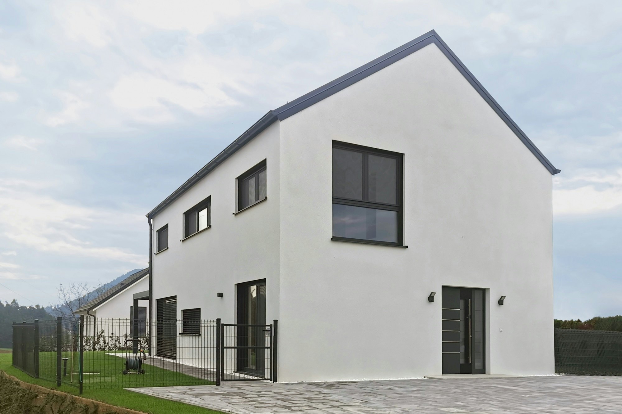 Hiša z najnaprednejšimi energetskimi in tehnološkimi rešitvami obsega 140 kvadratnih metrov bivanjske površine. Nadstandardno udobje zagotavljajo popolna prilagoditev pričakovanjem in željam kupcev in posebna arhitekturna prilagoditev prostorskim urbanističnim zahtevam. Dvokapna zasnova ter skladni in preprosti proporci z unikatnimi detajli prijetno zaokrožijo premišljeno tlorisno razporeditev in neposredno povezanost z zunanjim okoljem, ki se zaključi z nadstreškom na terasi.