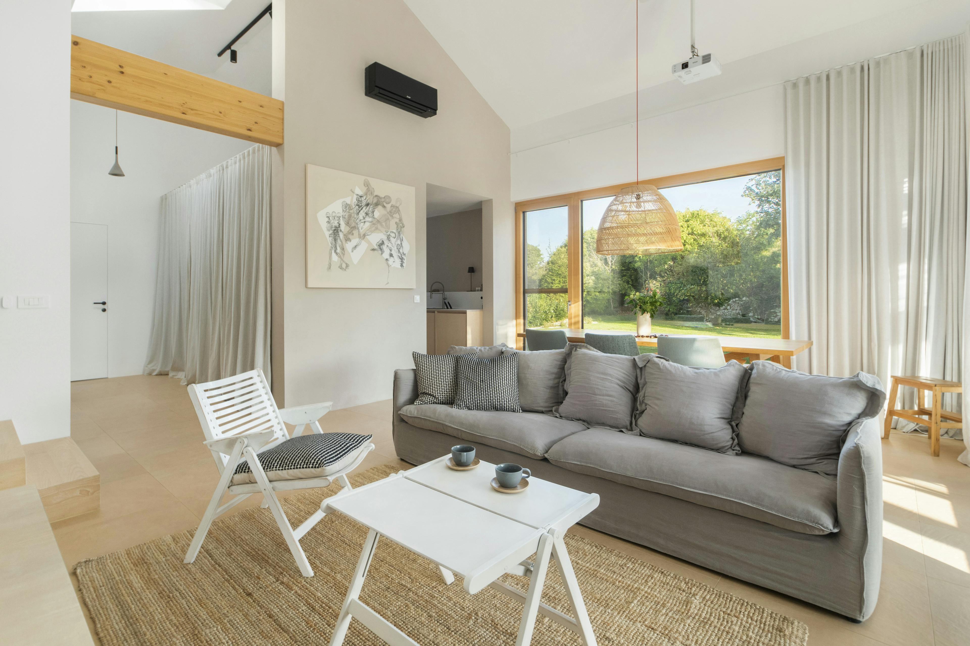 U ovoj kući nećete pronaći TV jer mlada obitelj radije ima pravo kućno kino. Umjesto toga, imaju ugrađen projektor i veliko platno, diskretno skriveno u stropu.