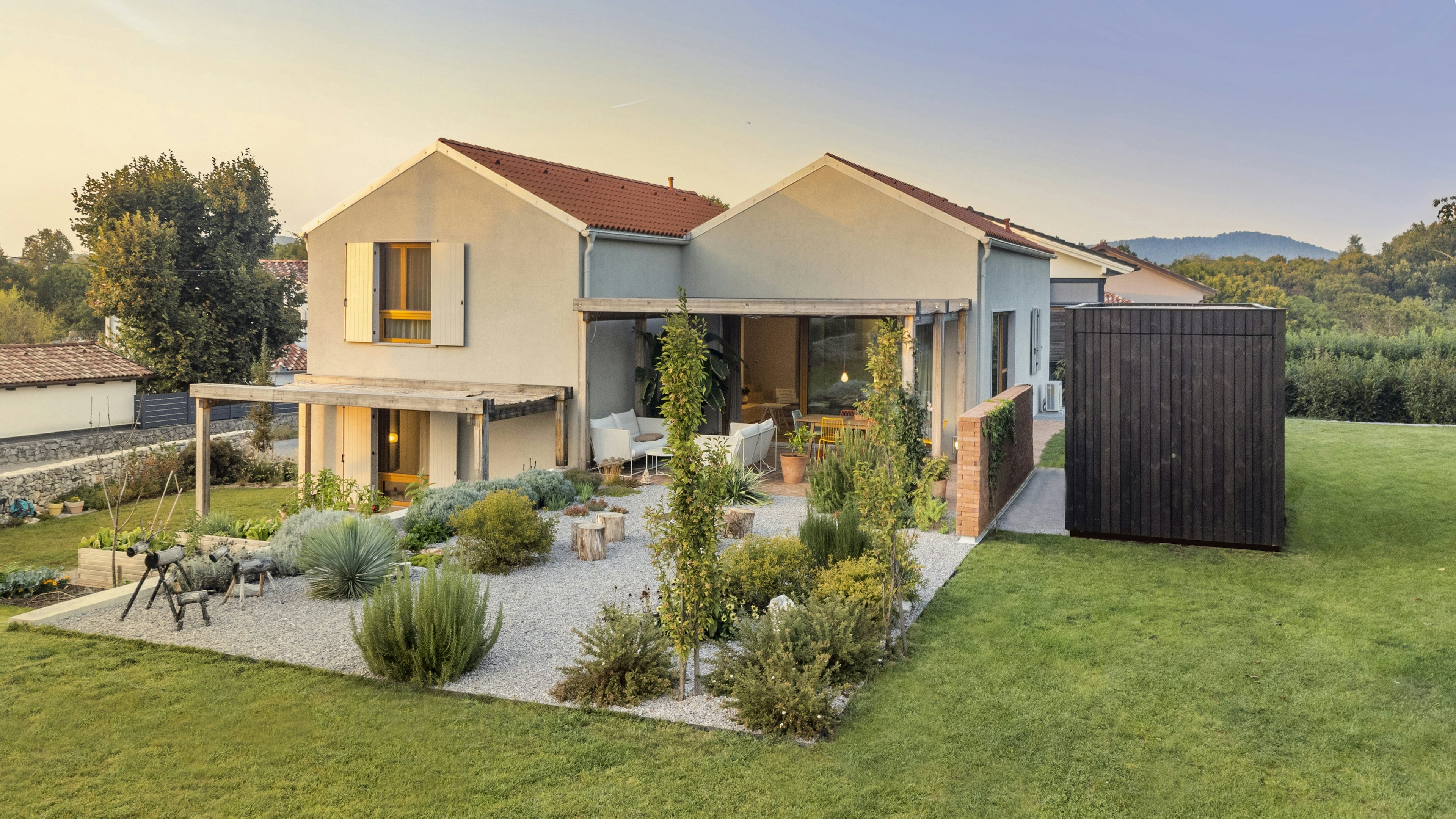 Kuća Bairro Alto izgrađena je u sustavu MEGA N14, što znači da postiže visoku energetsku učinkovitost i gotovo je nulta energetska kuća. Osim što prozori ELEGANT 78 PREMIUM 400 pružaju izvrsnu izolaciju i prirodnu svjetlost, kuća je opremljena i DOORS aluminijsko-drvenim ulaznim vratima koja dodatno poboljšavaju energetsku učinkovitost. Plan kuće također uključuje odvod radona i pripremu za naknadnu implementaciju tradicijskih elemenata kraške arhitekture, kao što su „JIRT“ i „ŠKURE“.