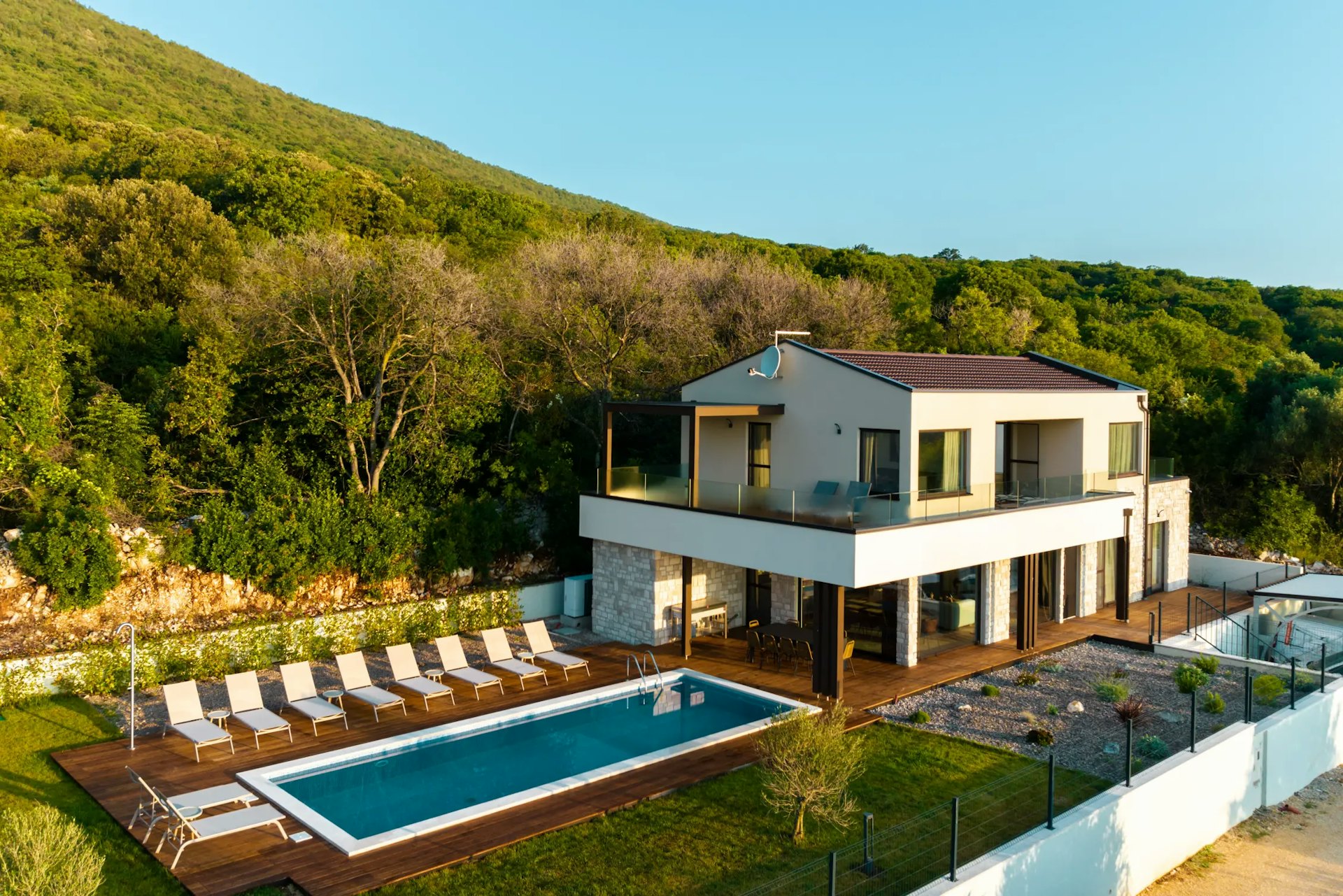 Vila s više od 170 m² pažljivo osmišljene stambene površine na dvije etaže pruža savršenu ravnotežu udobnosti i funkcionalnosti. Prostrana terasa od 63 m² u gornjoj etaži otvara pogled na beskrajno more, dok svaka spavaća soba ima vlastiti izlaz na terasu. Luksuz dodatno upotpunjuje privatni bazen, koji nudi mir, opuštanje i jedinstven doživljaj boravka.