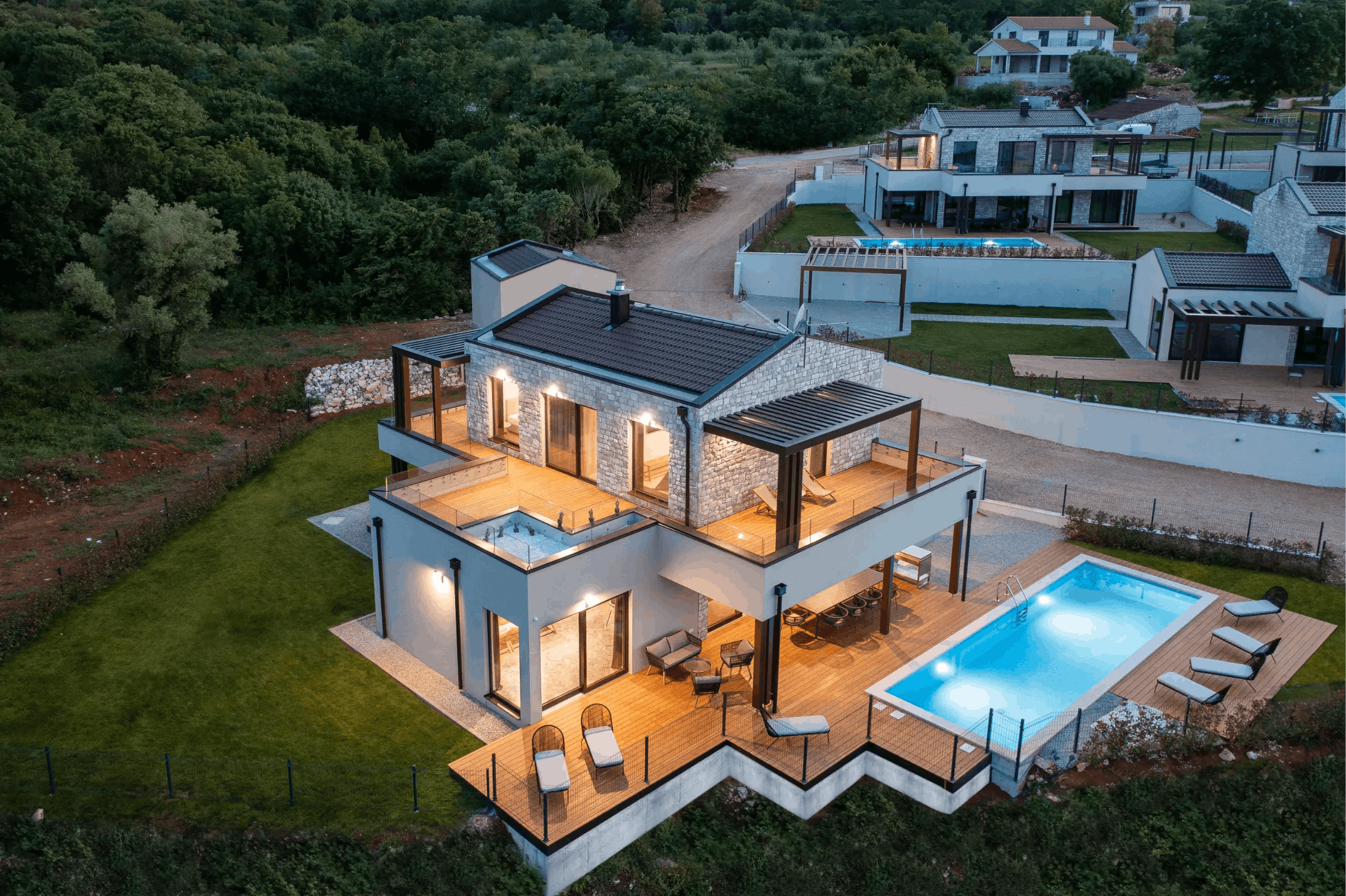 Jedan od takvih zapaženih projekata nalazi se u hrvatskoj Istri, gdje smo za stranog investitora izgradili luksuzno turističko naselje od pet vila. Investitor je želio energetski učinkovite objekte koji spajaju moderan stil s tradicionalnom istarskom arhitekturom.