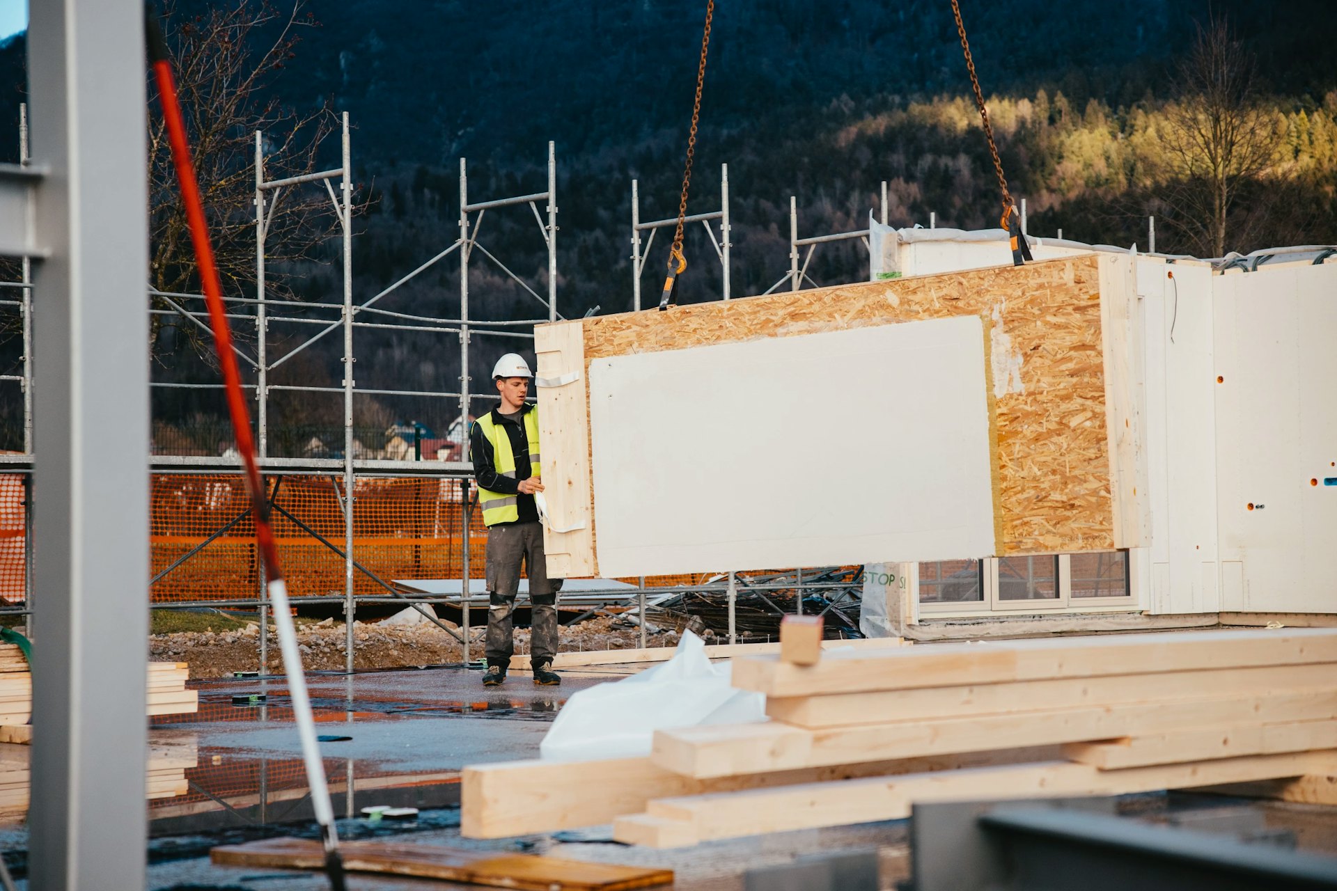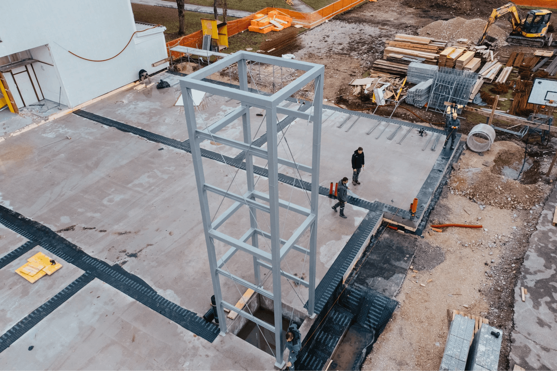 U gradnji ćemo koristiti napredni sustav održive drvene montažne gradnje koji spaja brzu implementaciju, energetsku učinkovitost i ekološki prihvatljiva rješenja. Naša dugogodišnja praksa i stručnost omogućuju nam učinkovito prilagođavanje zahtjevima terena što dokazujemo inovativnim pristupima poput korištenja čeličnog šahta za dizalo. Ova zamjena tradicionalnog armiranobetonskog šahta osigurava brži napredak radova i veću prilagodljivost građevinskih procesa.