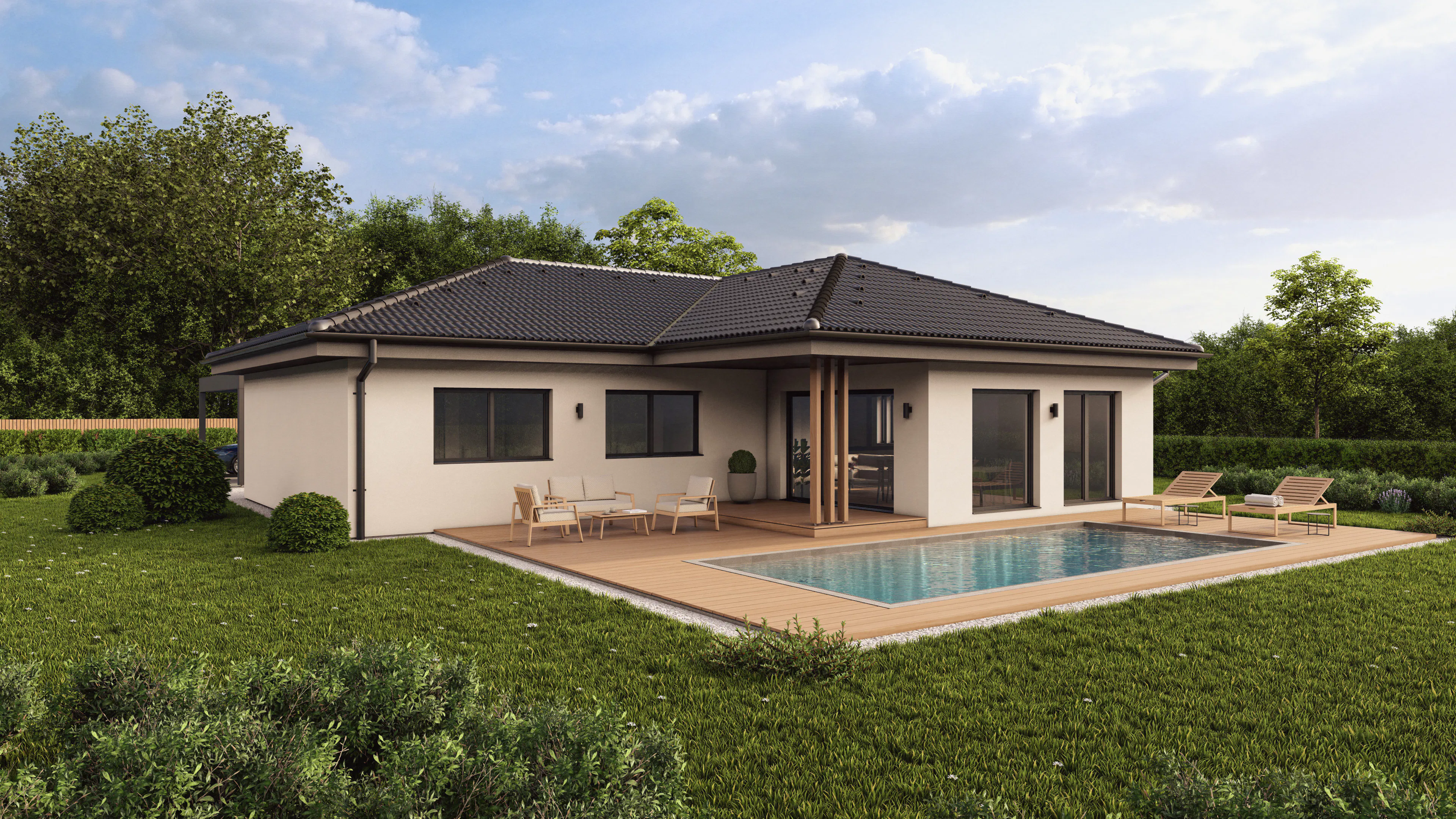 Lesene hiše s svojo toplino, naravnimi materiali in prijetno bivalno klimo ustvarjajo občutek domačnosti, medtem ko montažna hiša prinaša hitro gradnjo, visoko kakovost izvedbe in energetsko učinkovitost. Takšna zasnova omogoča brezčasno bivanje, veliko naravne svetlobe in premišljeno izrabo prostora za vsakdanji življenjski slog.