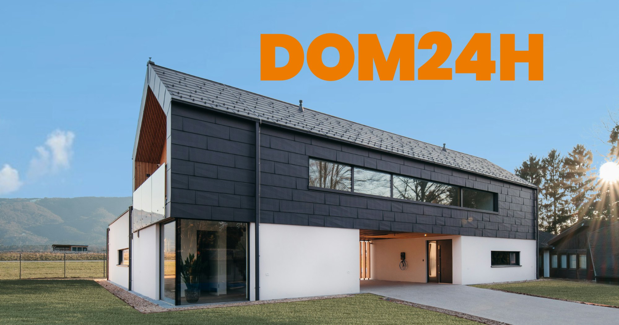 Naša hiša Dom24h je odgovor na izzive bivanja in dela od doma. Zasnovana je bila tako, da uporabniku omogoči opravljanje dela od doma brez potrebe po potovanju. Hiša je razdeljena na poslovni in bivalni del, ki ju fizično ločuje "carport". Bivalni del, lociran na jugozahodu, ponuja prostorno dnevno sobo, kuhinjo, jedilnico, garderobo, pralnico, wc in tehnično sobo. Preko stopnišča se poveže z umirjenim delom hiše, kjer najdete tri spalnice, wellness, otroško kopalnico ter poseben hodnik, ki spodbuja ustvarjalnost vseh družinskih članov.