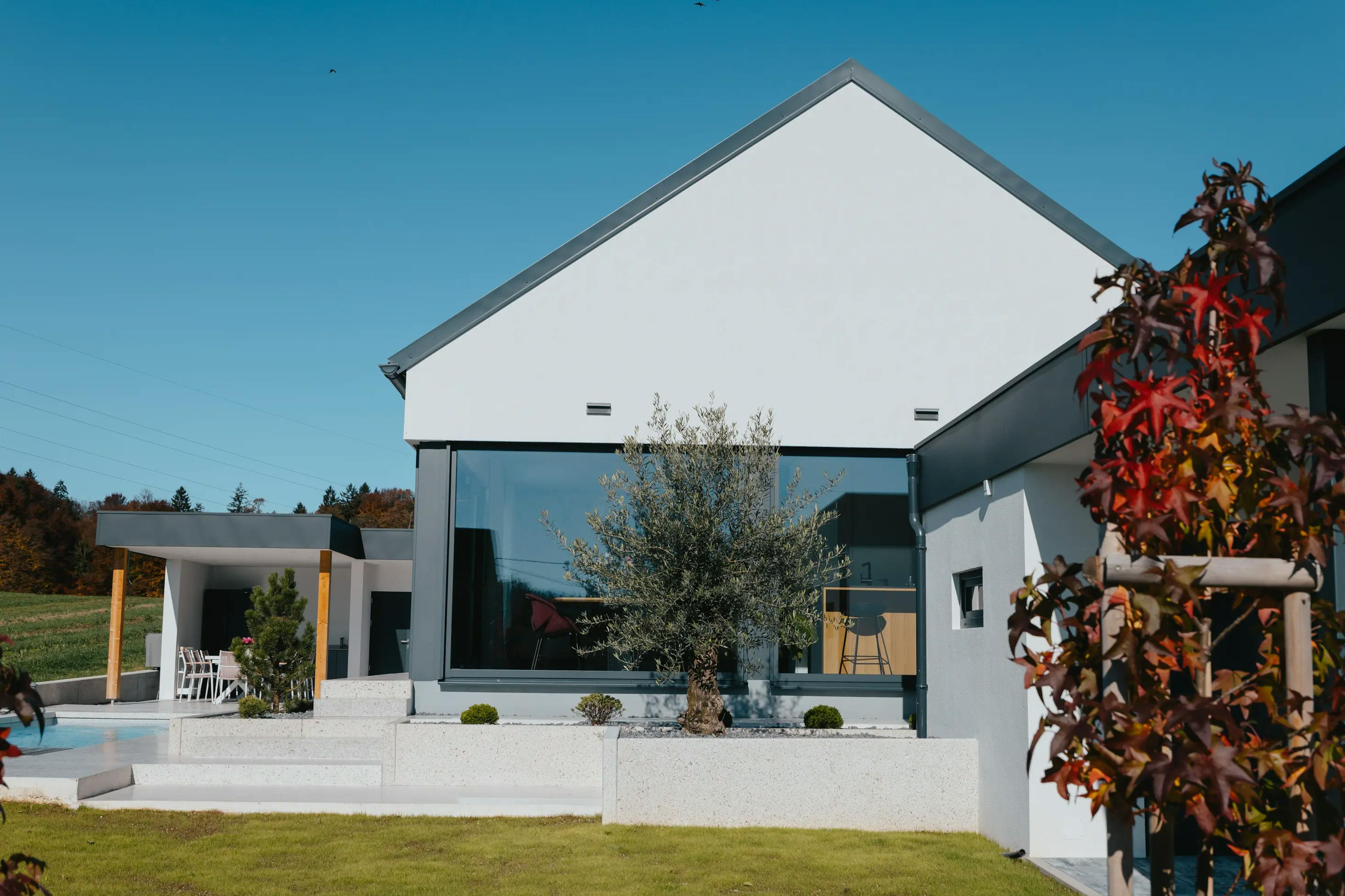 Vsak element hiše, od izbire materialov do prostorske zasnove, je bil premišljeno izbran z mislijo na funkcionalnost, estetiko in trajnostno gradnjo, kar odraža celovit pristop k projektiranju in izvedbi.