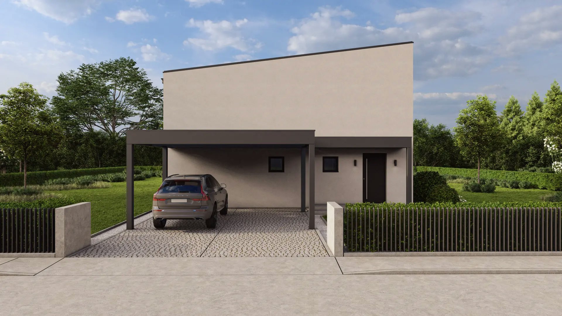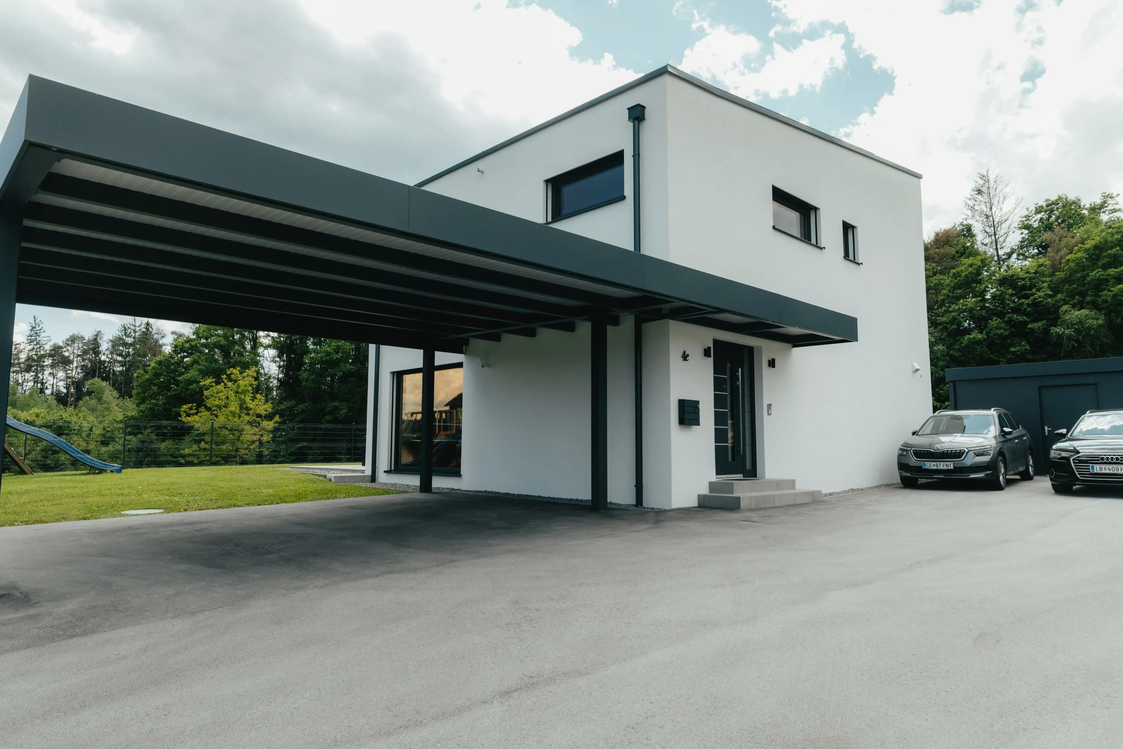 Hiša v okolici Vojnika, zasnovana v pasivnem standardu in grajena na ključ, je izjemen primer sodobne arhitekture, ki združuje estetsko dovršenost in visoko energetsko učinkovitost.