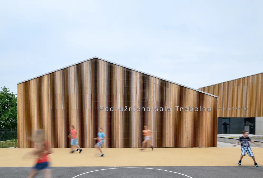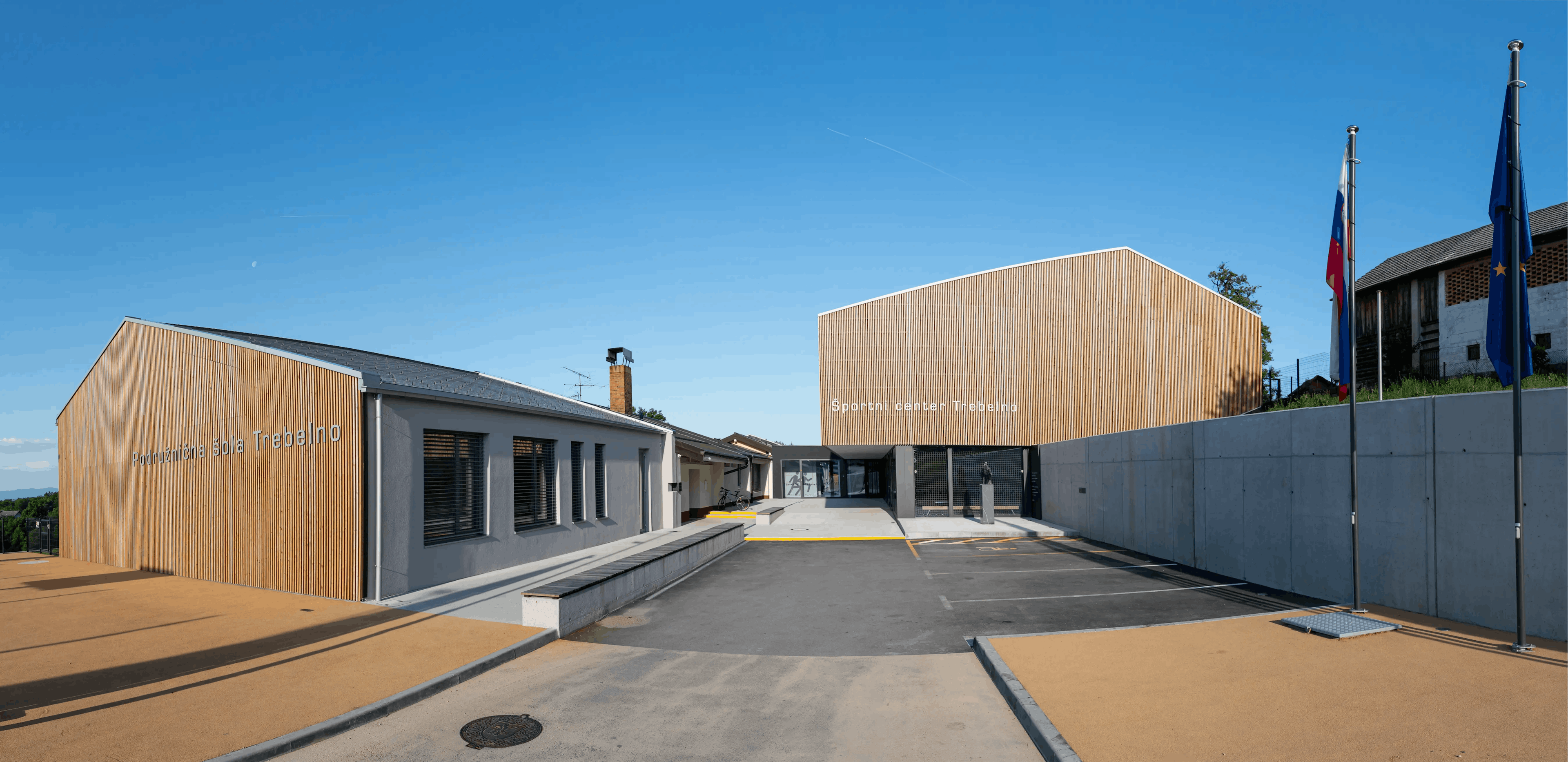 Dozidava podružnične osnovne šole Trebelno in nova večnamenska dvorana sta premišljeno zasnovani kot širitev šolskega kompleksa, ki ohranja skladnost naselja z dominantno cerkvijo. Novi objekti oblikujejo osrednji prostor, ki služi tako potrebam šole kot obiskovalcem dvorane. Dvorana je funkcionalno povezana s šolo in vrtcem, njena notranjost pa izstopa po estetsko dovršenih in premišljenih detajlih.