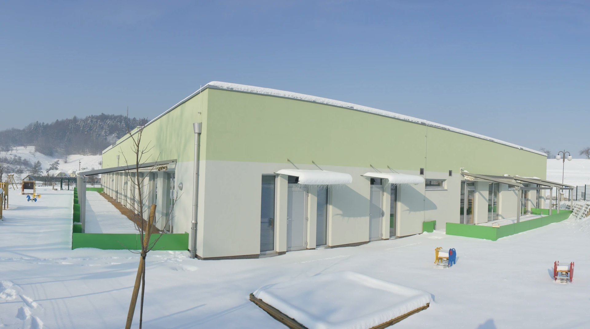 Sodoben pasivni vrtec smo zgradili tako, da je prilagojen lokalnim značilnostim in potrebam skupnosti. Objekt na 891 kvadratnih metrih zagotavlja prostor za 130 otrok, razporejenih v sedem oddelkov.
